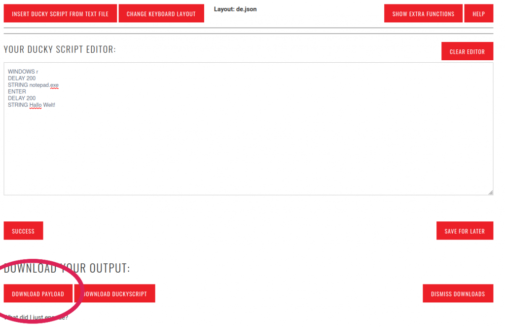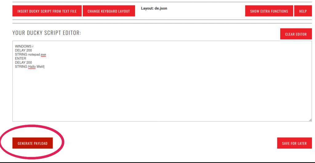Unser Beispiel kopieren wir jetzt in den Ducky-Encoder auf der Hak5 Website. https://shop.hak5.org/pages/ducky-encoder