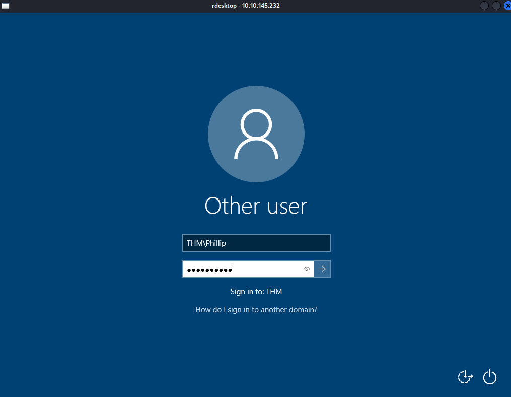 rdesktop -u THM\Phillip 10.10.145.232 -v