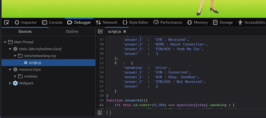 Alternativ können wir uns auch durch die Fragen klicken, diese zählen und eine Flag (THM{TCP_CHATTER}) finden. Diese wird wohl für einen anderen Raum gebraucht.