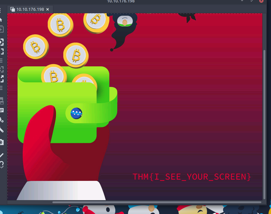 Using a VNC client on the AttackBox, connect to the target of IP address 10.10.176.198. What is the flag written on the target’s screen?