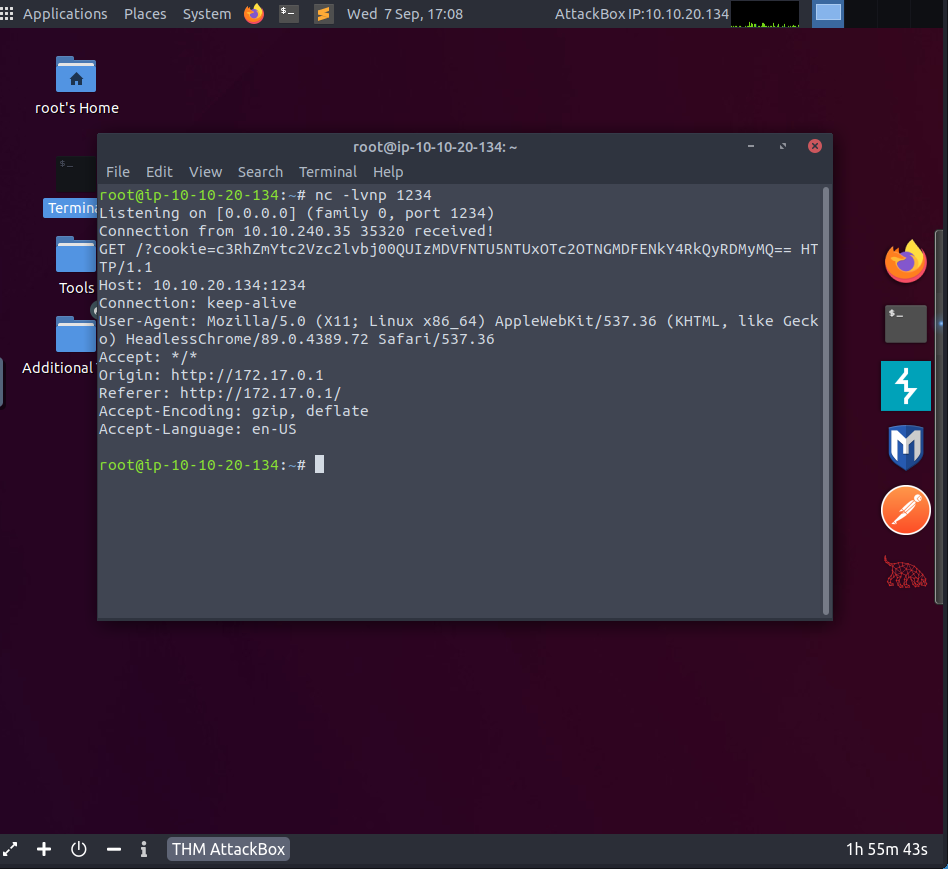 Im Task wird es ja bereits angesprochen, mit unserer VPN Verbindung erhalten wir leider keine Rückmeldung. Hier müssen wir auf die Attack-Box ausweichen.