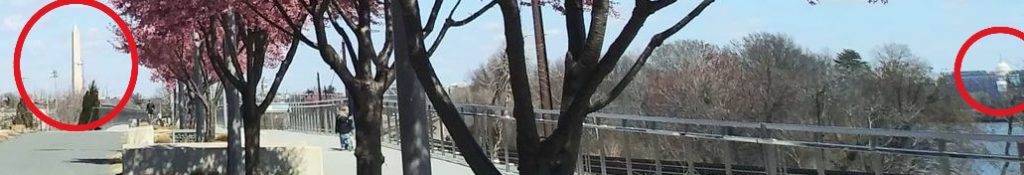 Wenn wir uns das Bild aus diesem Tweet herunterladen und vergrößern, dann sehen wir in der Mitte das Washington Monument und rechts das Dach des Kapitols. Der Internationale Flughafen von Washington ist der Ronald Reagan Washington National Airport (DCA)