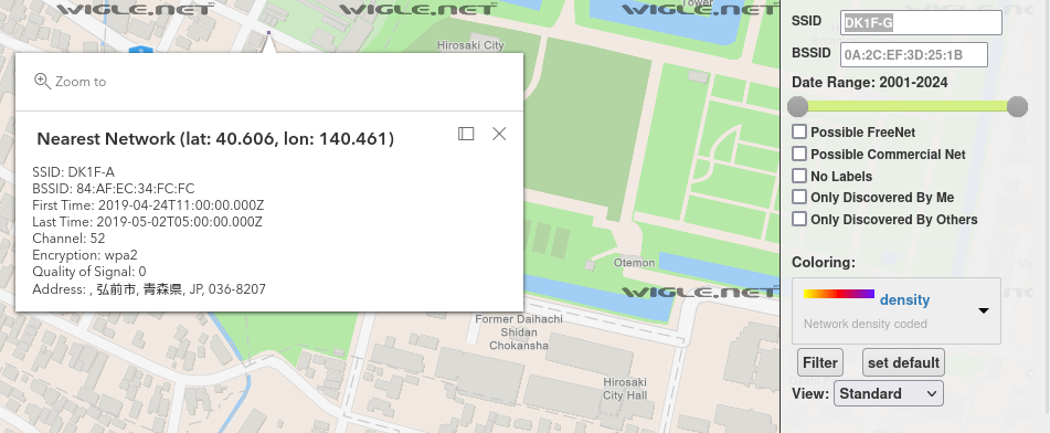Nach einer kurzen weile finden wir das Ergebnis im Norden Japans. Um die BSSID zu erfahren klicken wir einfach auf dem Marker.