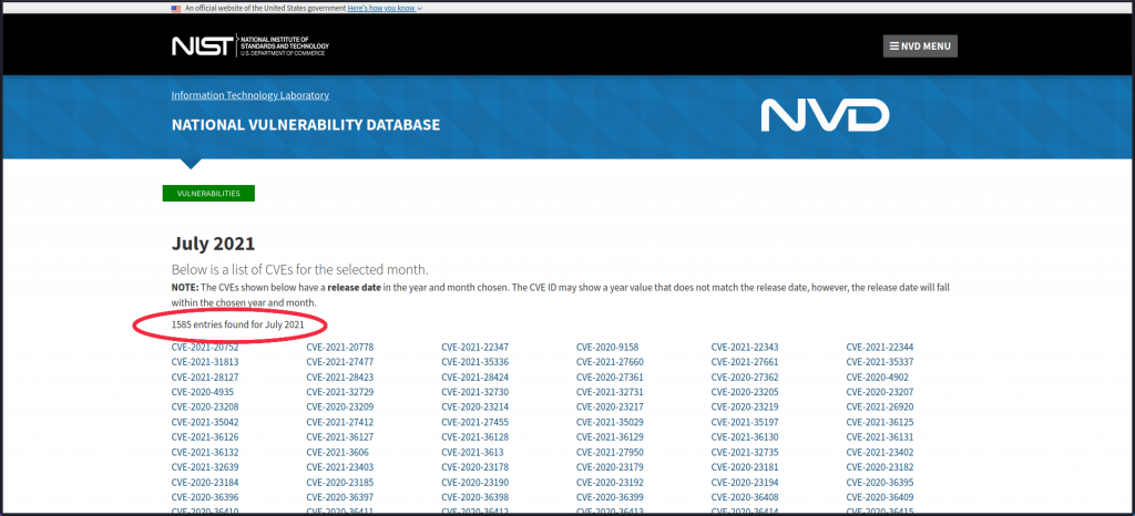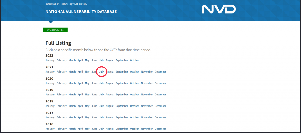Wir gehen auf die Seite der NVD und klicken auf July 2022: