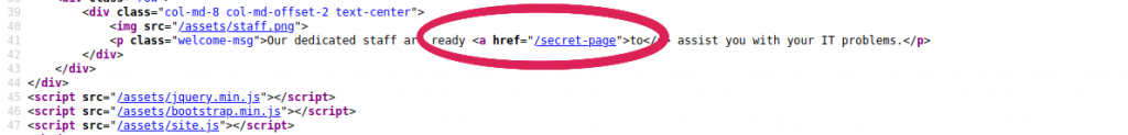Etwas weiter unten im Quellcode finden wir den erwähnten „Secret“ Link. Diesen können wir einfach anklicken.