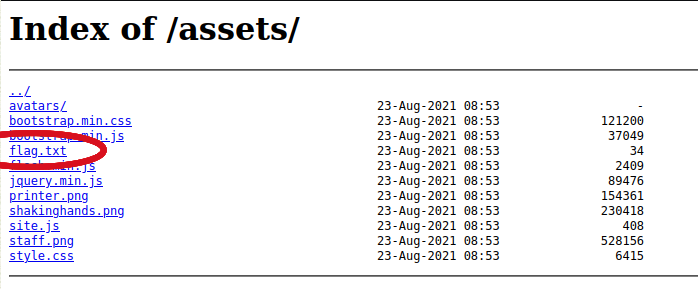 Hier haben wir ja schon einen kleinen Hinweis bekommen. Die gesuchte flag.txt ist im /assets/ Directory.